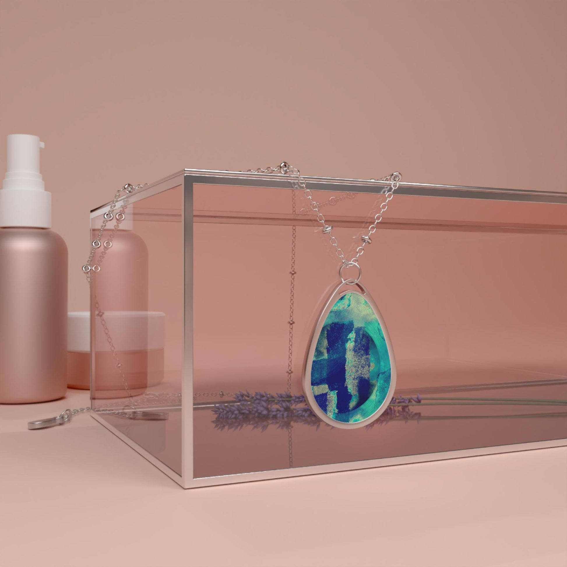 Elegant Blue Abstract Oval Necklace, Teardrop Pendant, Delicate Jewelry, Gift for Her, Minimalist Necklaces, Birthdays, Anniversaries