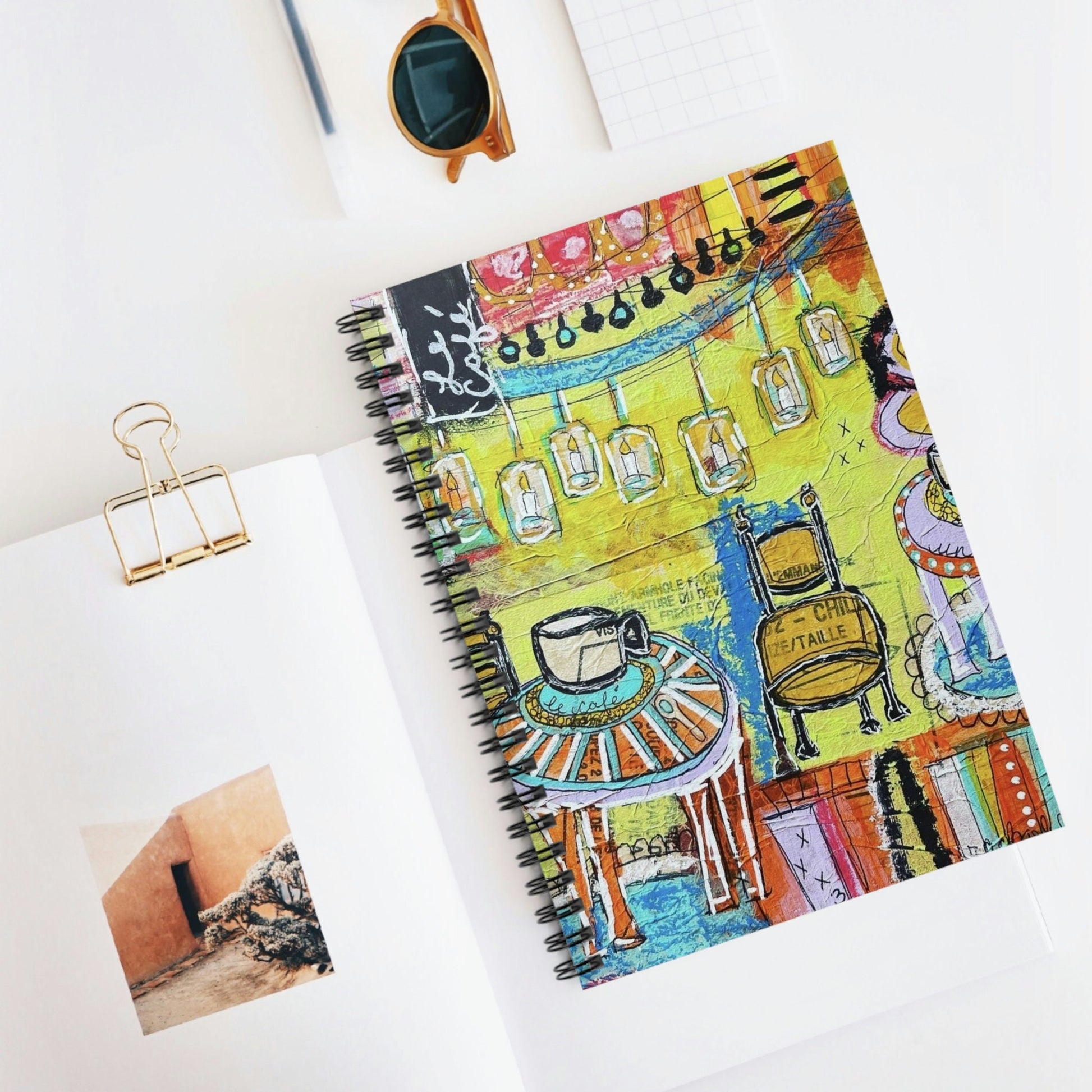 French Cafe Art, Coffee House Art - Spiral Notebook - Ruled Line