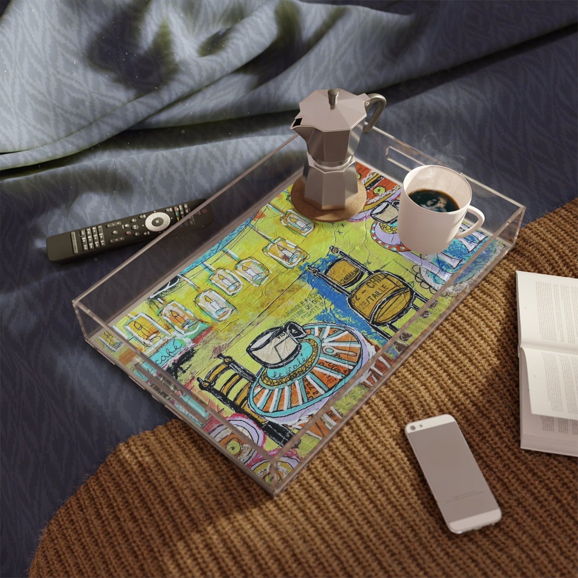 French cafe design, France inspired, coffee house art - Acrylic Serving Tray