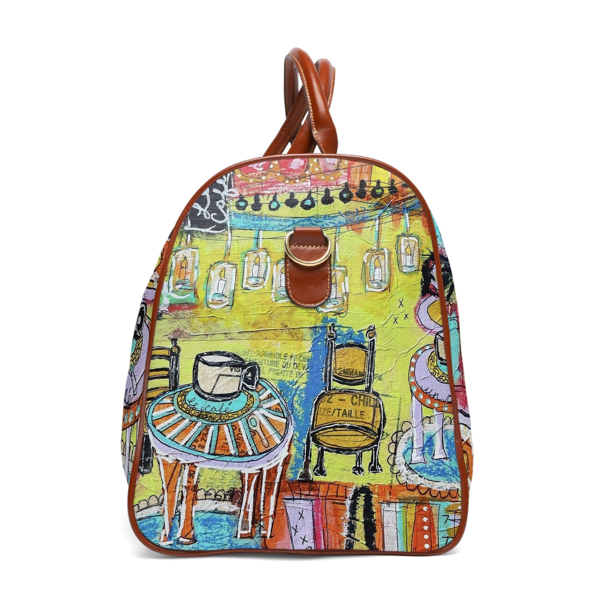 French Cafe Design, France inspired, Coffee House Art - Waterproof Travel Bag