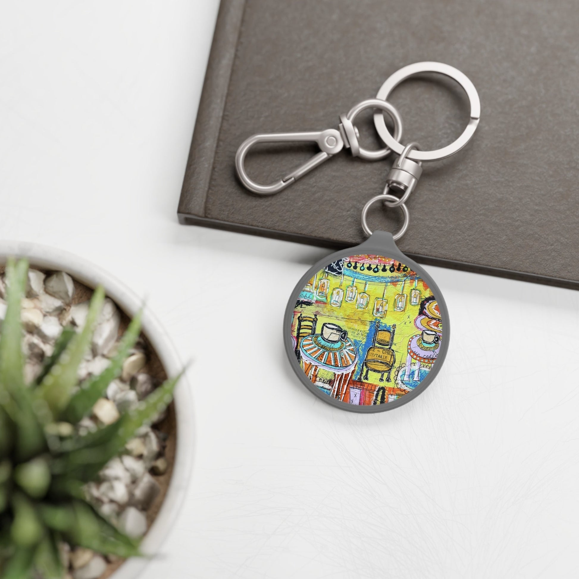 Keychain Tag - French Cafe Design, France inspired, coffee house art