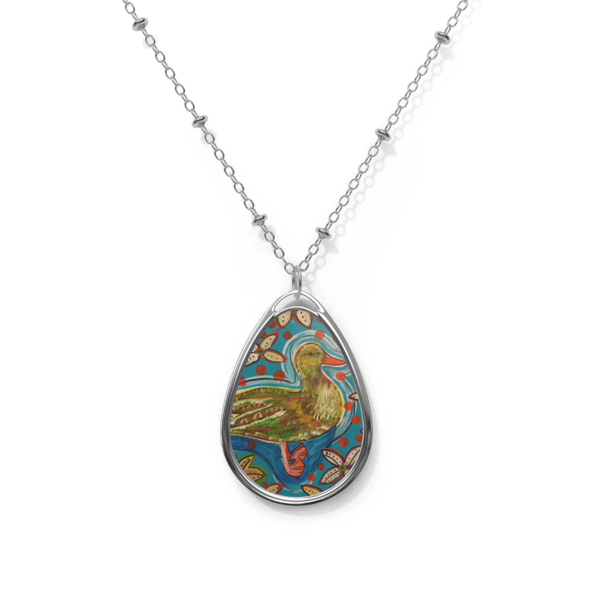 Oval Necklace Pendant with Duck Art for Duck and Animal Lovers, Wildlife Jewelry Gift, Nature Inspired Necklace, Animal Pendant, Bird Lover