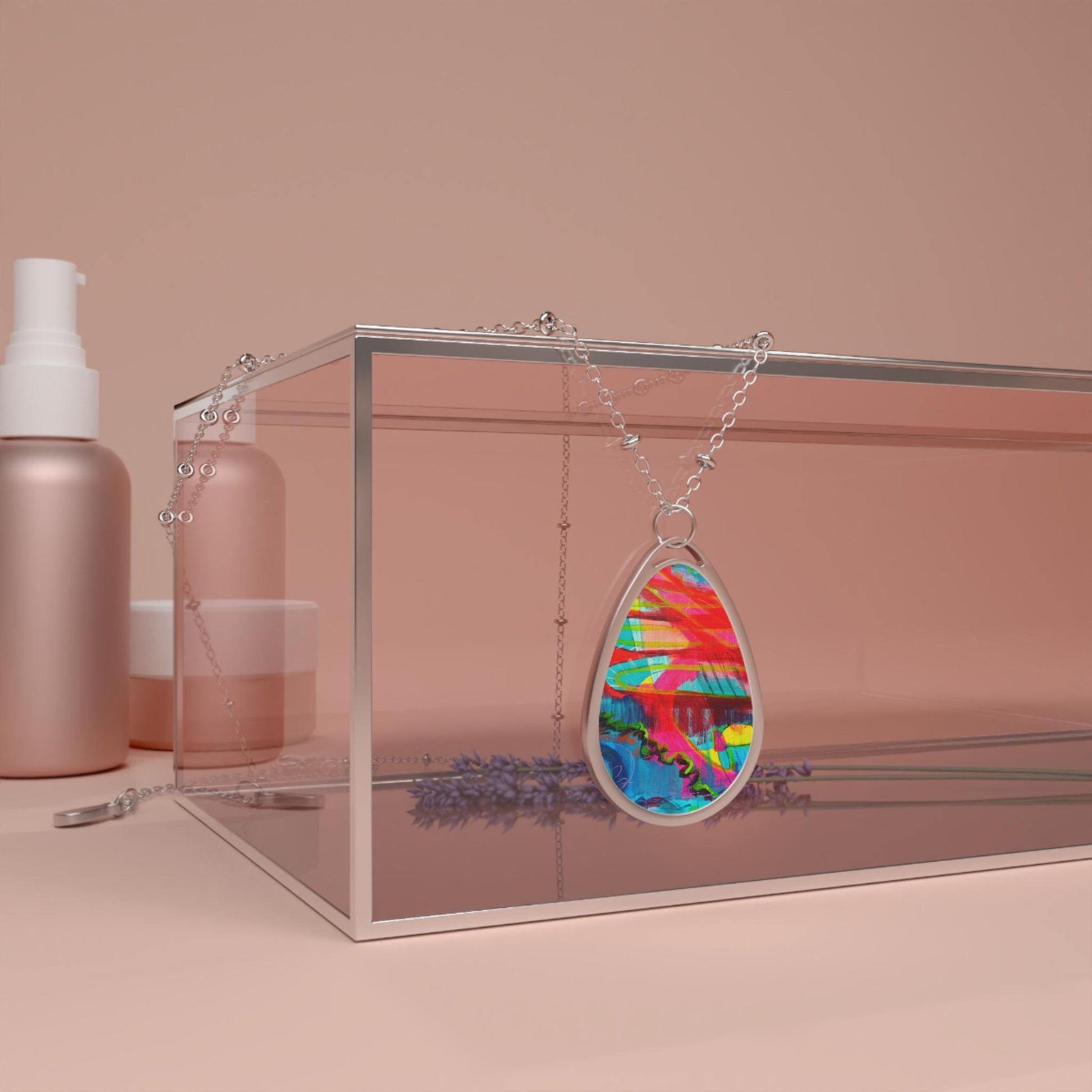 Vibrant abstract art pendant Oval Necklace, Artistic Jewelry, Boho Chic Pendant, Unique Gift for Her, Handmade Statement Accessory